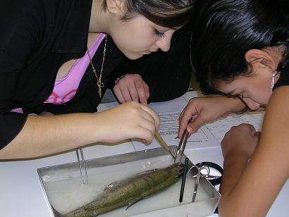 Rahmen des Projektes „Wasser“ untersuchen und sezieren die Schülerinnen